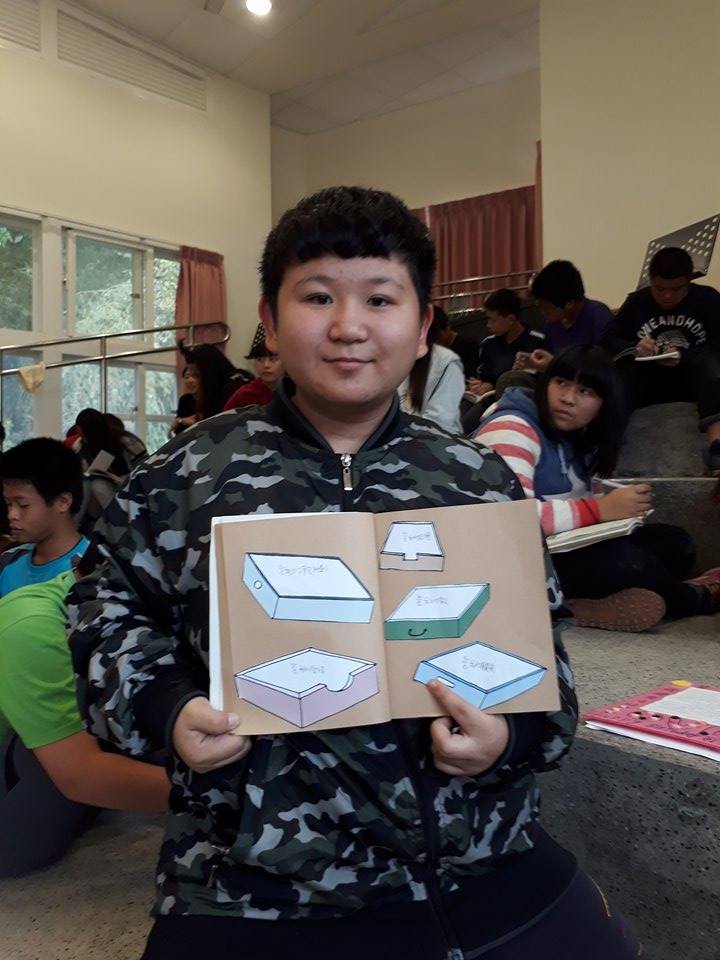 課程的最後一部分,由泰安中小輔導老師石佳儀以詩人陳黎的詩作『阿德的抽屜』為主軸,引導同學想像自己的秘密抽屜裡想要放什麼東西?同學將五個抽屜仔細地貼在「小遊,戲」筆記本內頁,寫下了自己在乎的價值。石老師的課程就像是同學對自己內心珍藏之物的對話,翻閱內心的抽屜再仔細寫下,讓我們也觸碰到同學們內心最柔軟的那塊秘密之地。