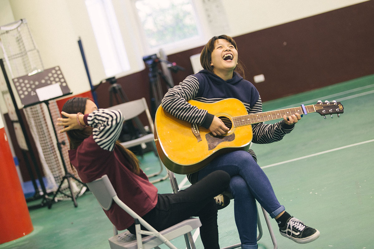 下午兩點半,負責導覽的同學領著大家前往校園中一個又一個呈現地點。有同學拿出手寫的信紙,在梅花樹下述說著信裡頭重要的字句對自己生命的影響;有同學領我們到校舍最高處,看遠方的山景,以朗讀的方式傾訴這片景色讓他緬懷之處;有同學透過表演的方式,演出重要的東西在意外擦撞下遺失的心情;有人現場放一首歌給大家聽,一首逝去的親人曾經親口唱給自己聽的歌⋯。二十多位同學,每一位都真心誠意且勇敢地在大家面前分享了獨特的片段,沒有複雜的技巧與形式,卻承載著飽滿的感情。