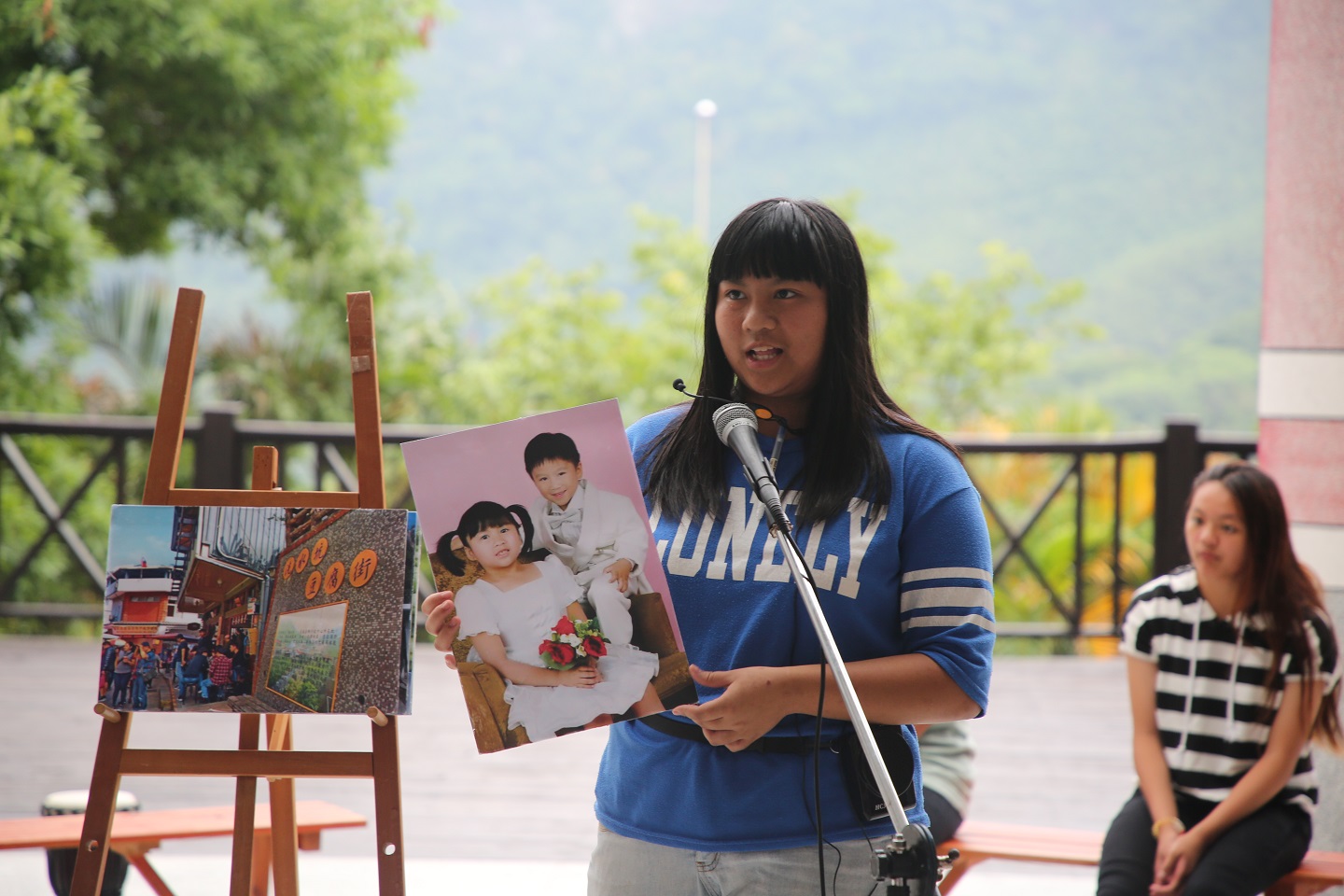 九年級的郁琪,大方地表示願意擔任展演呈現時的導覽員。她為展演開場、介紹各組演出主題及參與同學,以清楚的手勢指引觀眾下一個演出的位置、帶領觀眾在校園中行動、確認舞台以及觀眾觀看的位置,演出結束後再引領觀眾繼續前往下個展演地點。郁琪原本就是代表學校參加鄉土歌謠合唱比賽及舞蹈比賽的選手,在一次又一次的演練下,她穩重大方地勝任導覽員的任務。