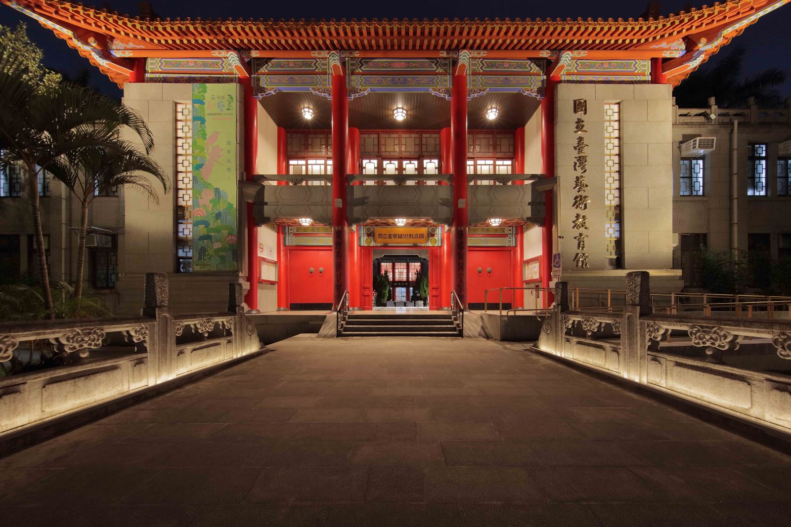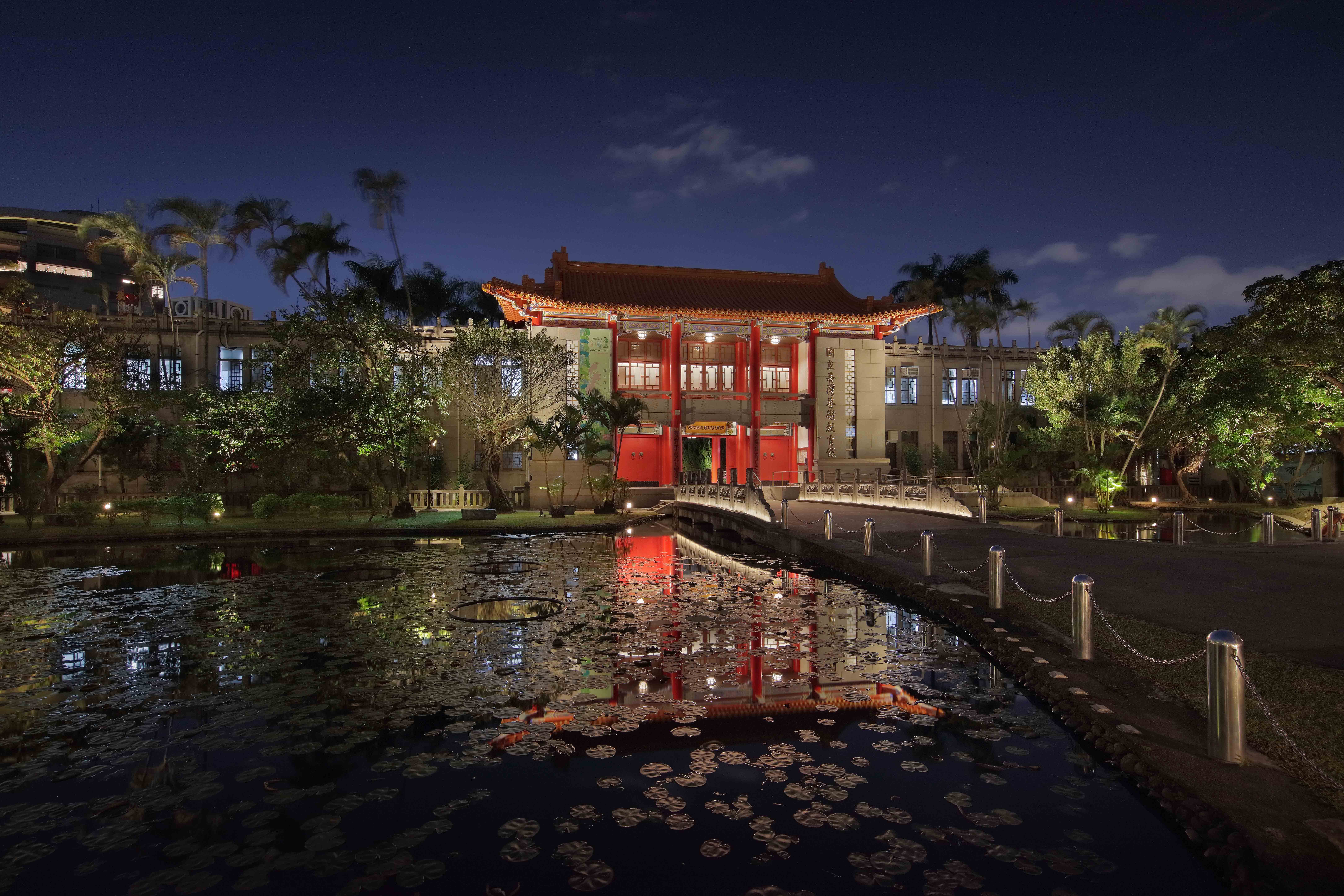 國立臺灣藝術教育館為了突顯建築物歷史悠久的文資價值、風格特色及量體層次,提供民眾舒適絕佳的觀展體驗,照明設計以光線勾勒空間輪廓,藉由更細膩的鋪陳、豐富了室內展場及戶外園區的日間與夜間表情,提升藝教館周圍光環境的質感。