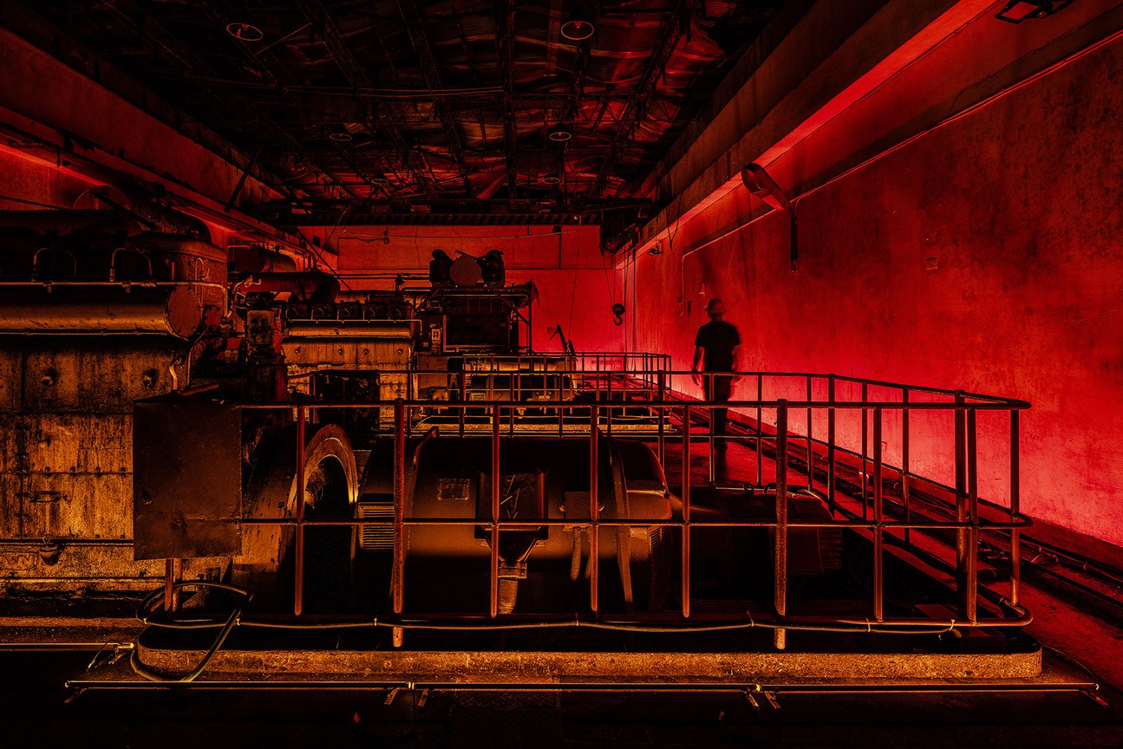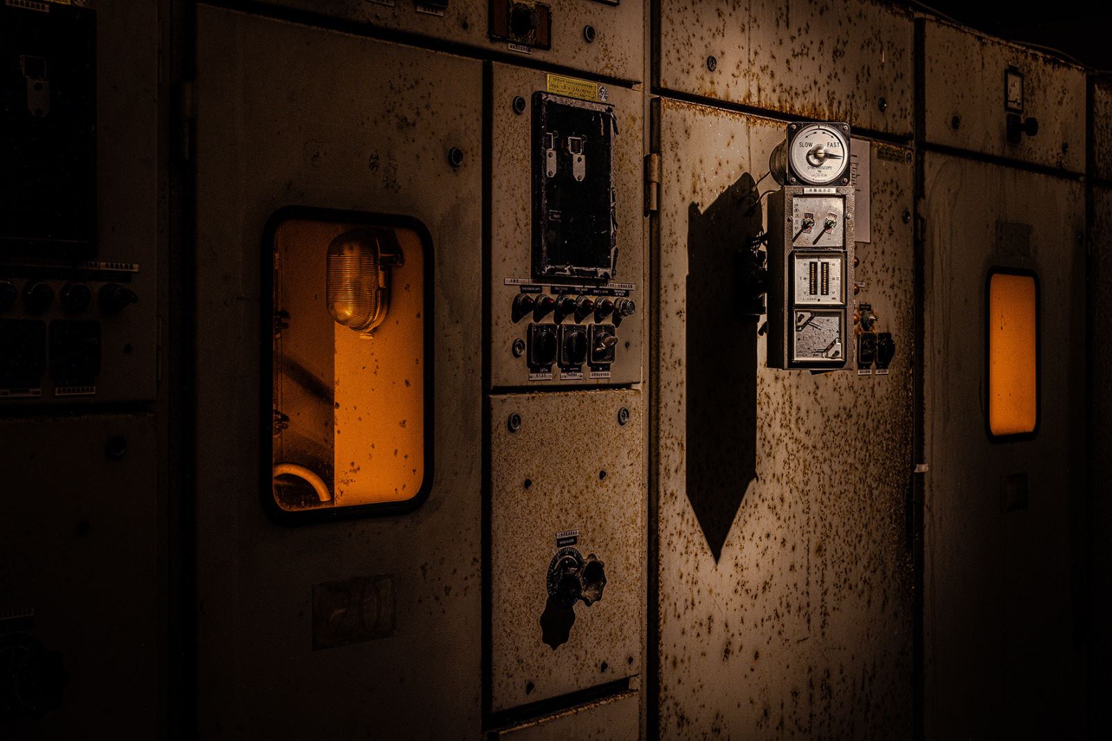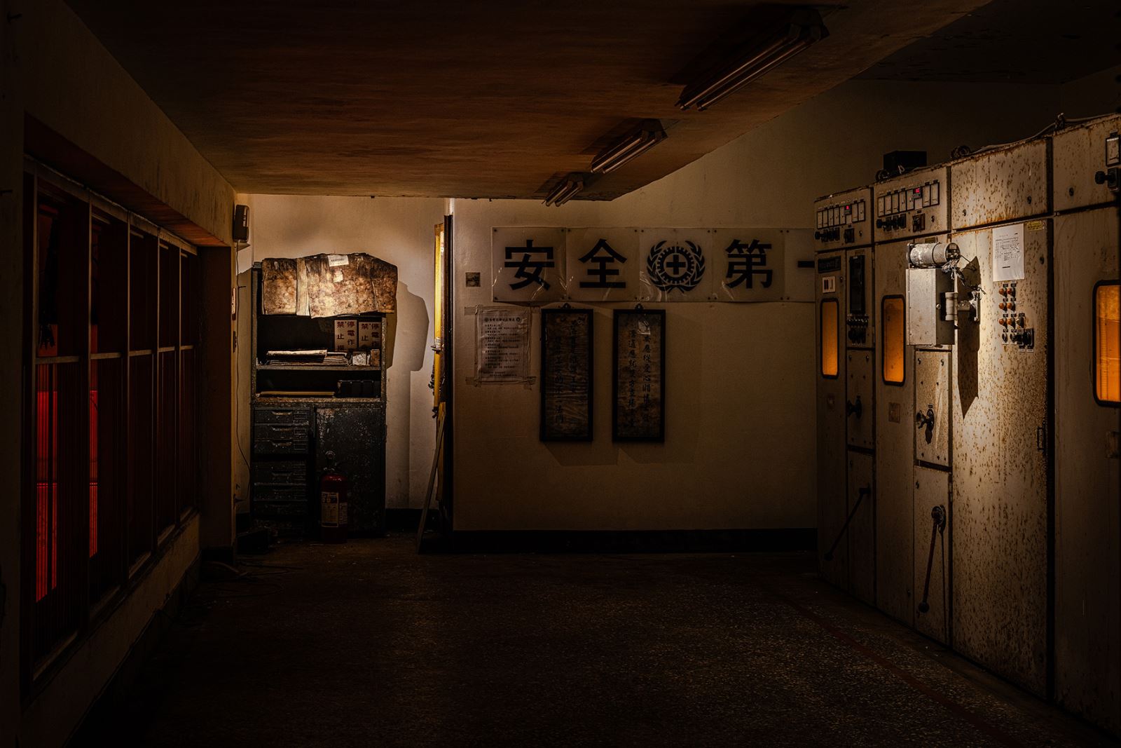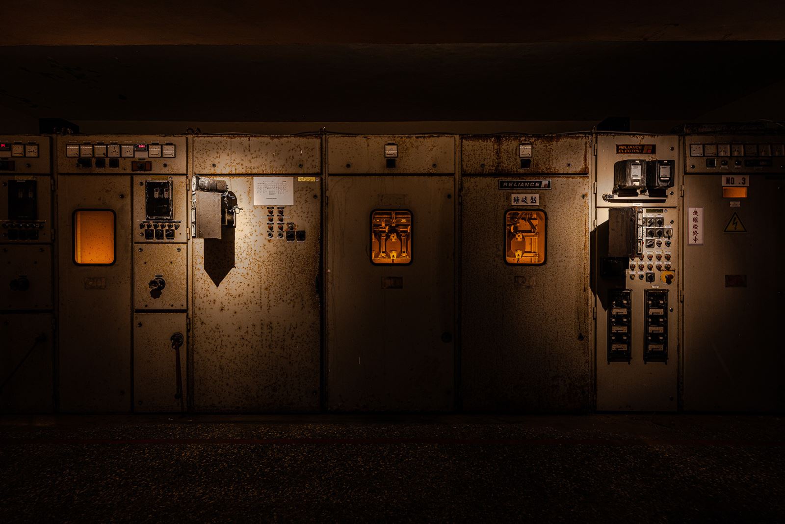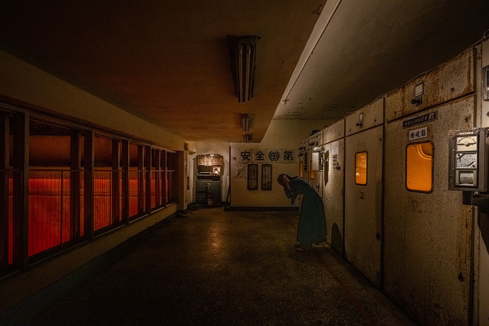 進入發電廠需先經過一段約30公尺長的窄通道,配合當時廠內所購置德國製發電機組,於通道內運用德國製復古防爆壁燈揭開序幕。以低色溫2700K的燈光,微弱的、懷舊的光感引導參觀者開始走入歷史隧道。進入眼簾的監控室是過往電廠工作人員觀察火力發電機具運作狀況的空間,於整體暗空間環境下用重點照明方式將儀錶設備做視覺強化,設備櫃內部也透著琥珀光隱喻著機器曾經的運作。