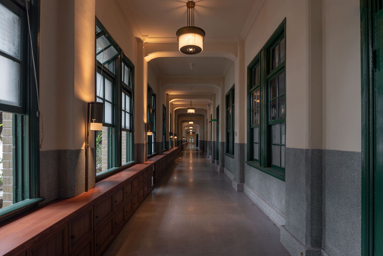 我們希望廊道的照明是整體性的被控制表現的,如果有的地方亮有的地方不亮,不管從內或從外都難以看出其均勻規律的古典美感,因此我們希望以”場景”式的控制模式,改變傳統上一燈一鍵的控制思維,最後也成功說服了校方。 由於所有的訂製燈皆可以調光,因此我們設定了幾種便於學校使用的燈光場景,並將面板設於方便操作管理之處,讓光復樓的燈光不只有開與關兩種選擇,而能夠因應天色與人為活動有著更彈性且兼顧美感的變化與應用。而本案採取的控制系統,由於不須配置訊號線,大幅減少敲打管線的動作,對歷史建築來說,是較為溫和的施工方式,同時滿足了設計上可調光的需求。