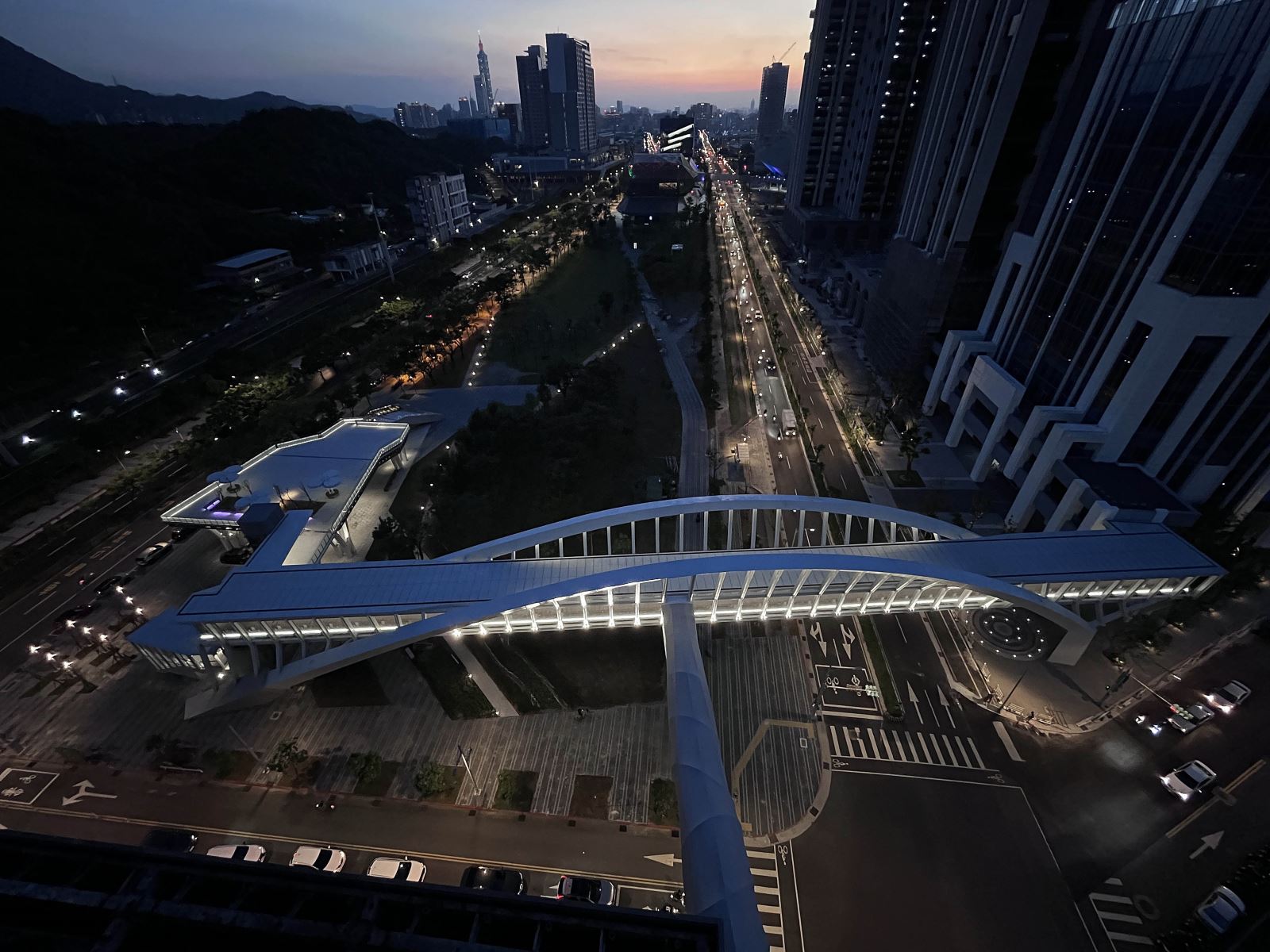 為提升整體都市識別度,設計亦融入區域性地標照明元素,透過燈光強調橋體結構曲線與關鍵轉折點,營造富有特色的夜間視覺焦點,成為地區具代表性的夜間景觀地標,展現南港轉型與都市形象的現代感。