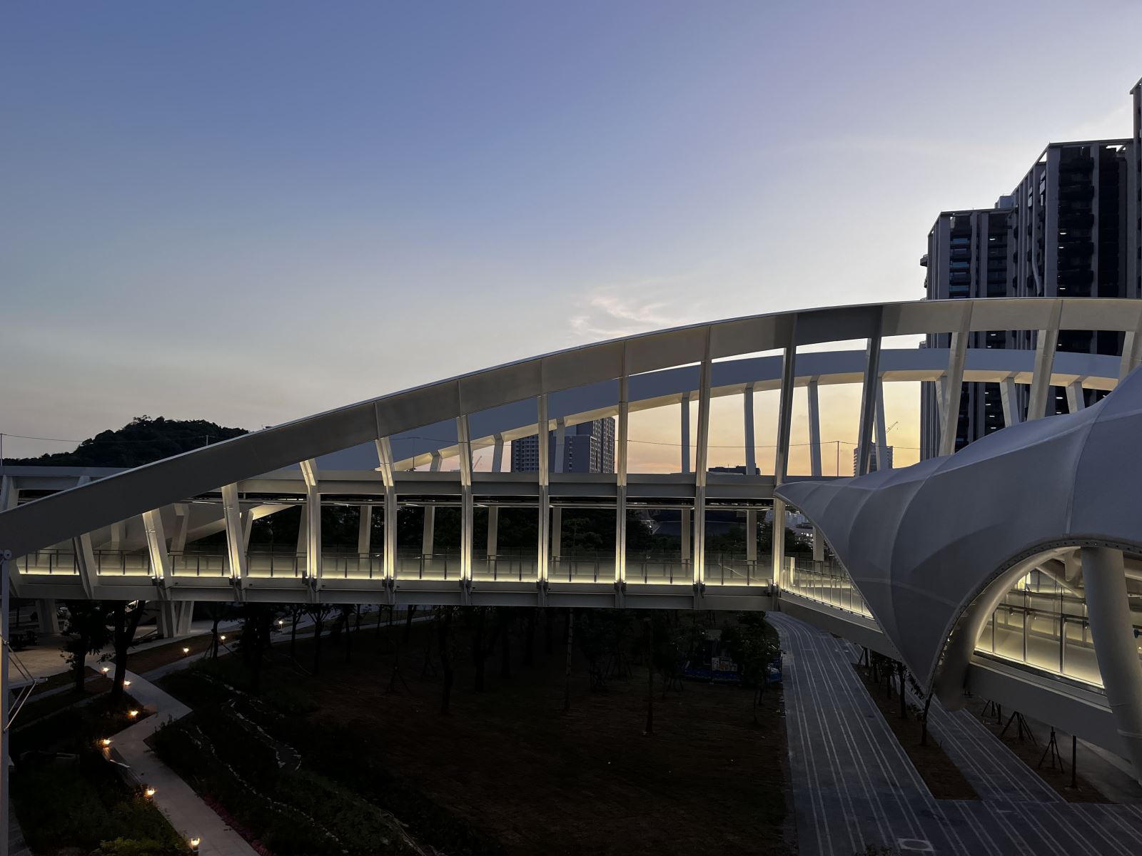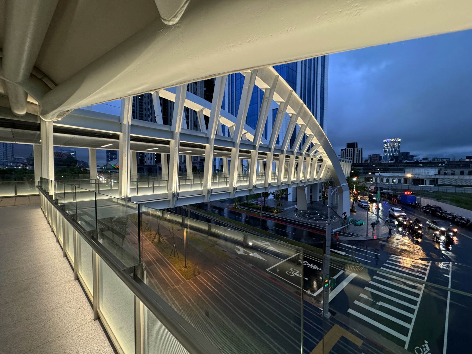 本案之照明規劃以人本導向為核心,兼顧夜間導引、安全、防眩與環境友善,營造兼具功能性與視覺美感的都市夜間空間。整體照明配置強調行人動線的清晰辨識,從橋體延伸至平台區域,以光線引導民眾順利通行,提升夜間環境的可讀性與安全感。