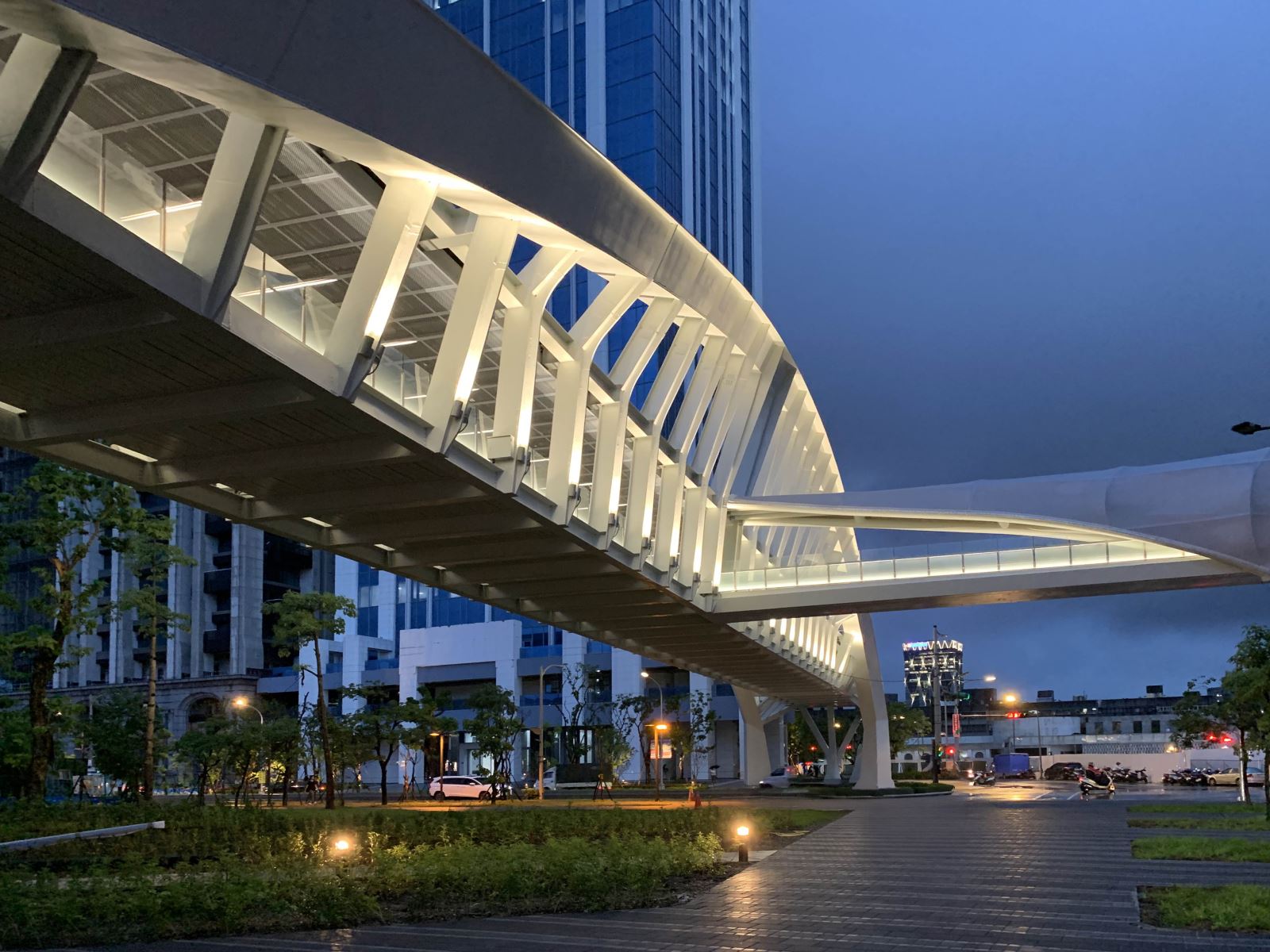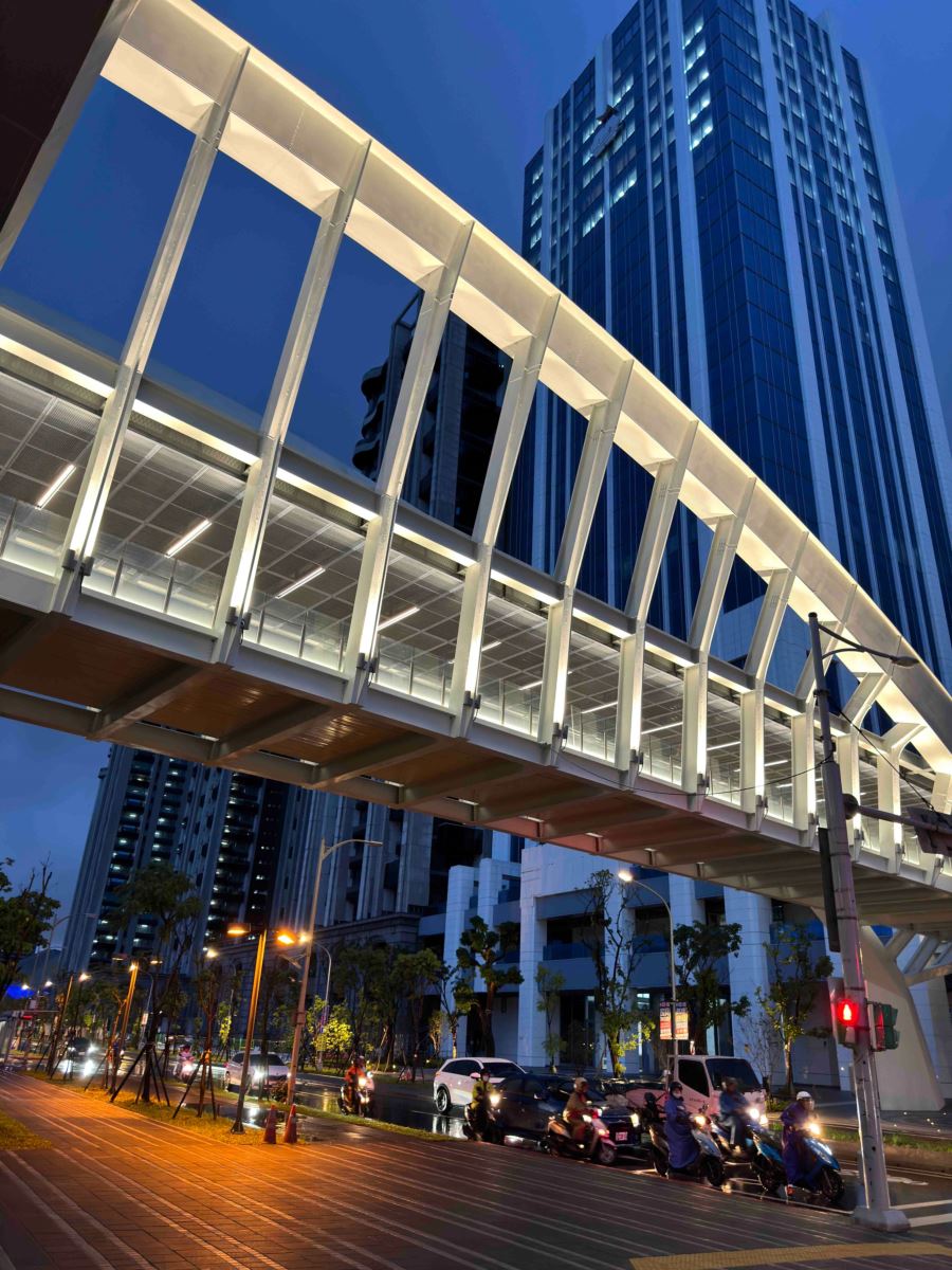 安全與舒適的光環境規劃,重新定義空橋連廊以及休憩平台不再是機能的轉換過渡空間,人與環境也產生了不同於以往的和諧互動。透過光線串連成市民可以休憩聊天交誼空間,整合成城市空間中可欣賞的視覺焦點。