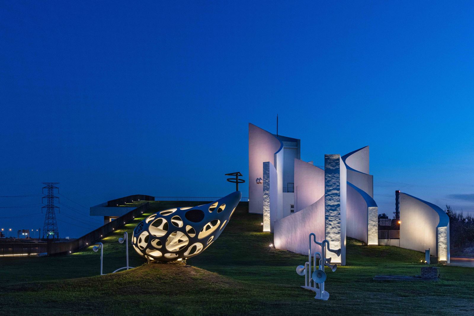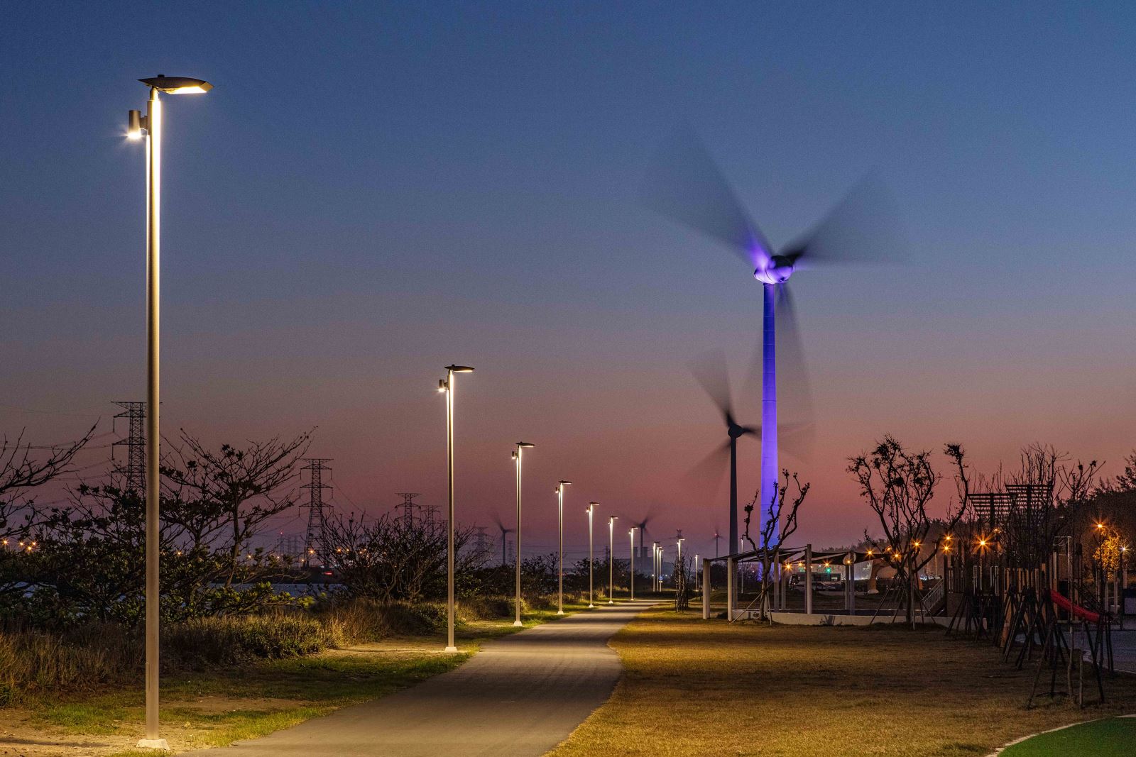 光環境設計尊重伸港當地文化歷史環境及建築設計理念,以互動式並搭配季節照明設計,變化融入濕地整體環境,營造場域之間互相輝映的風貌,呈現整體環境之夜間特色與空間層次。