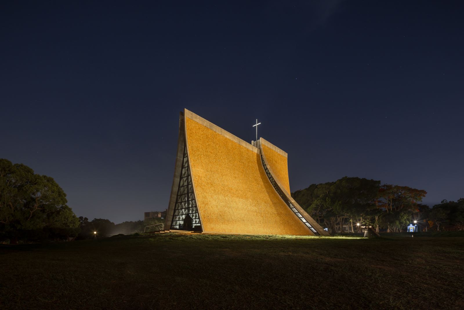 藉此次修復工程,我們回溯建築師對教堂的原初構想,在尊重既有空間精神的前提下,引入現代化燈具與整合性光環境規劃:精準運用人工光,營造宛若自然天光的柔和與優雅,細膩襯托曲面稜線;夜幕降臨,暖調微光勾勒結構輪廓,使路思義教堂在白晝與星空下皆綻放雋永光彩,重現其神聖與詩意。
