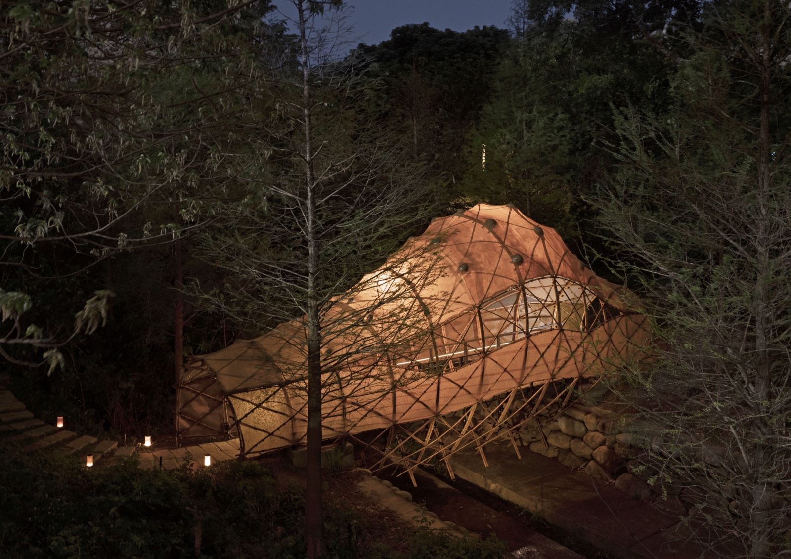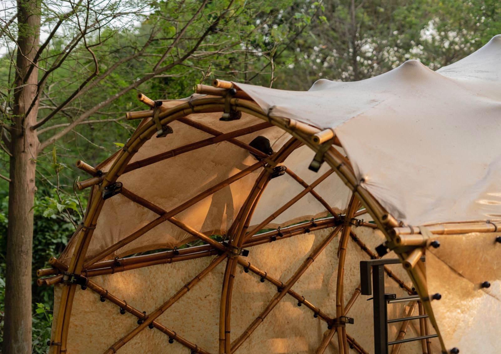 4創新:⾸創全⽵蒸汽彎曲⽵結構與⽪層透光層次,傳遞藝術性與⾃然建築的前瞻。